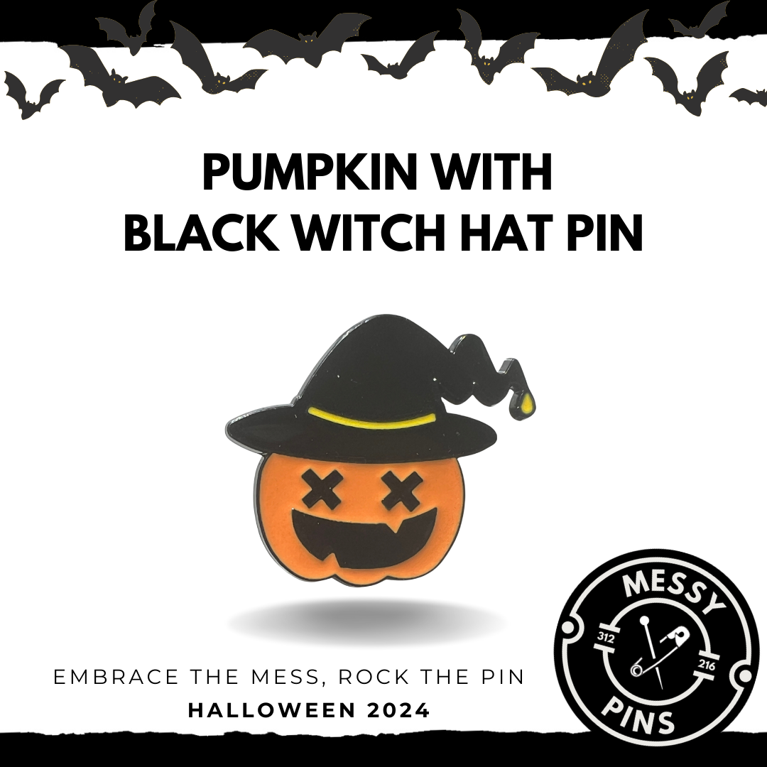 Get your spook on with our Pumpkin with Black Witch Hat Pin—because every pumpkin needs a little witchy flair! This mischievous design combines the classic Halloween pumpkin with a stylish witch hat, making it a perfect accessory for the spooky season. It's great for those who want to showcase their Halloween spirit with a dash of fun.
